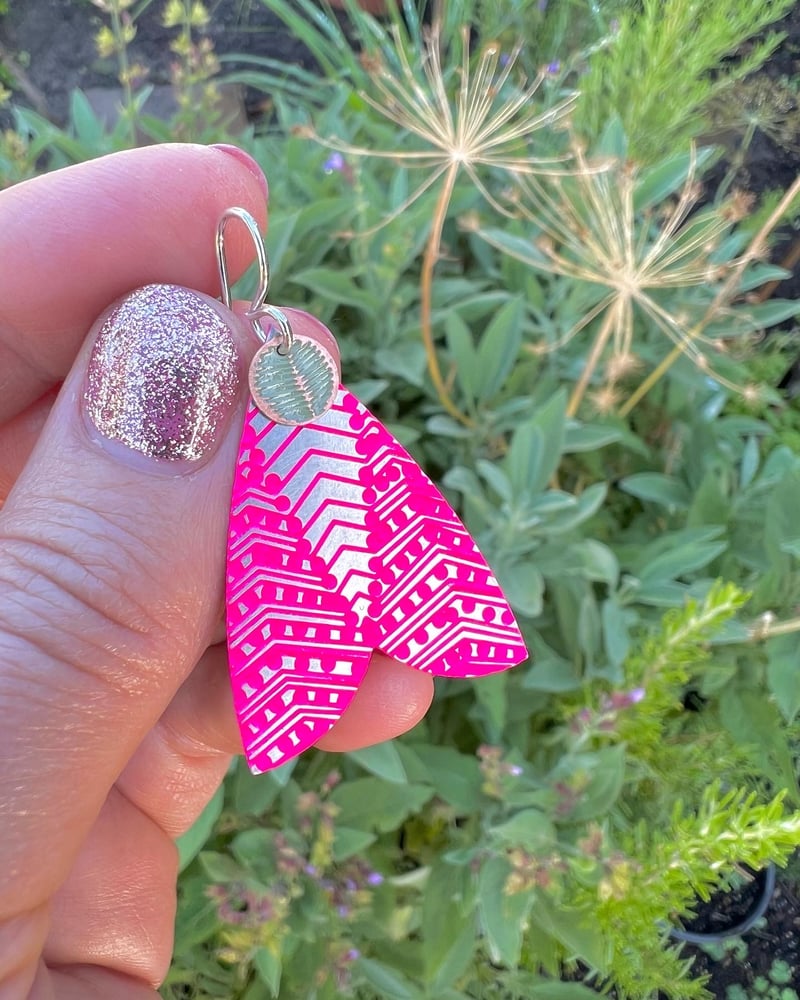 MOTH EARRING: PATTERNED MOTH NEON PINK